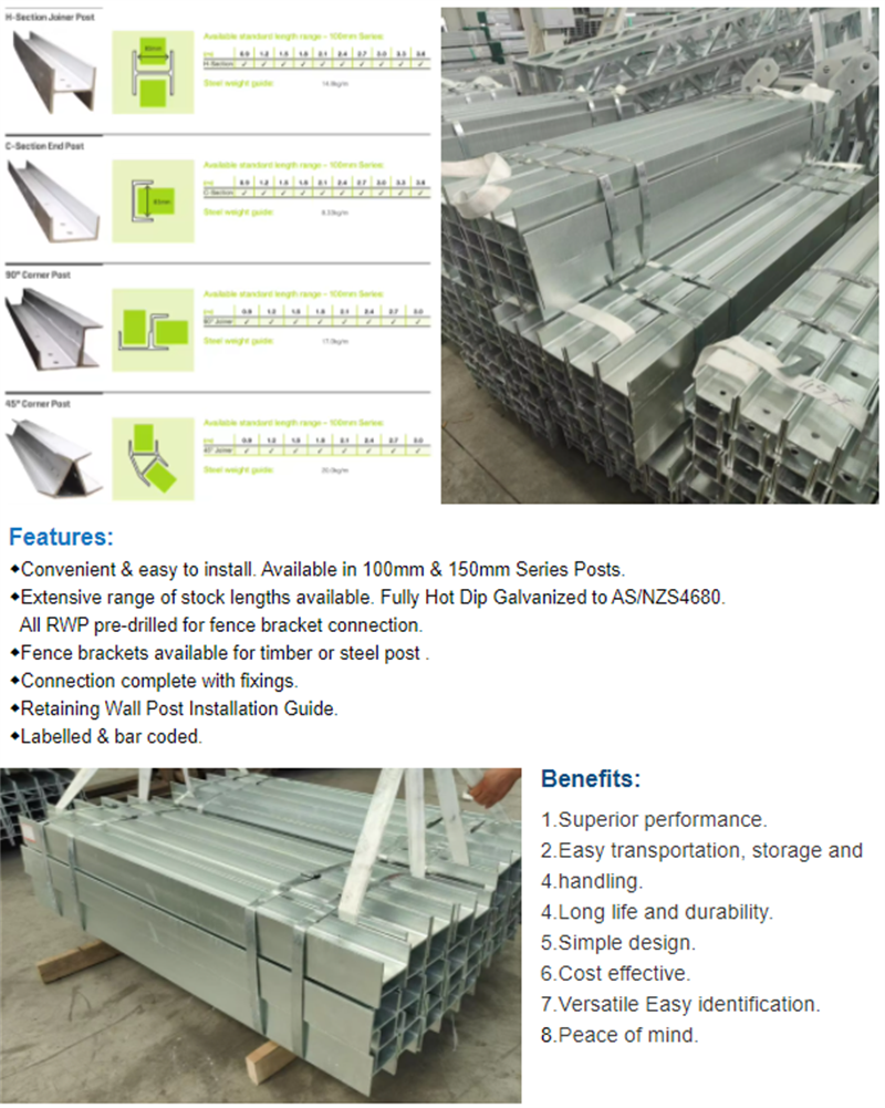 Factory Best Galvanised Steel Uprights H Post UC/UB Channel Steel Retaining Wall