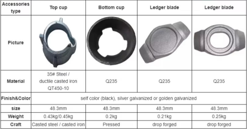 The Ledger Blade not only offers a lightweight specification of 0.21kg/0.25kg, but also supports surface treatments such as natural color and galvanizing to adapt to different working conditions. At the same time, it has high compatibility with malleable cast iron Top Cup and low-carbon steel Bottom Cup, which increases the assembly efficiency of the entire Cuplock system by about 20%. Industry insiders say that these highly adaptable and high-performance accessories are helping construction projects achieve dual optimization in terms of safety and efficiency.